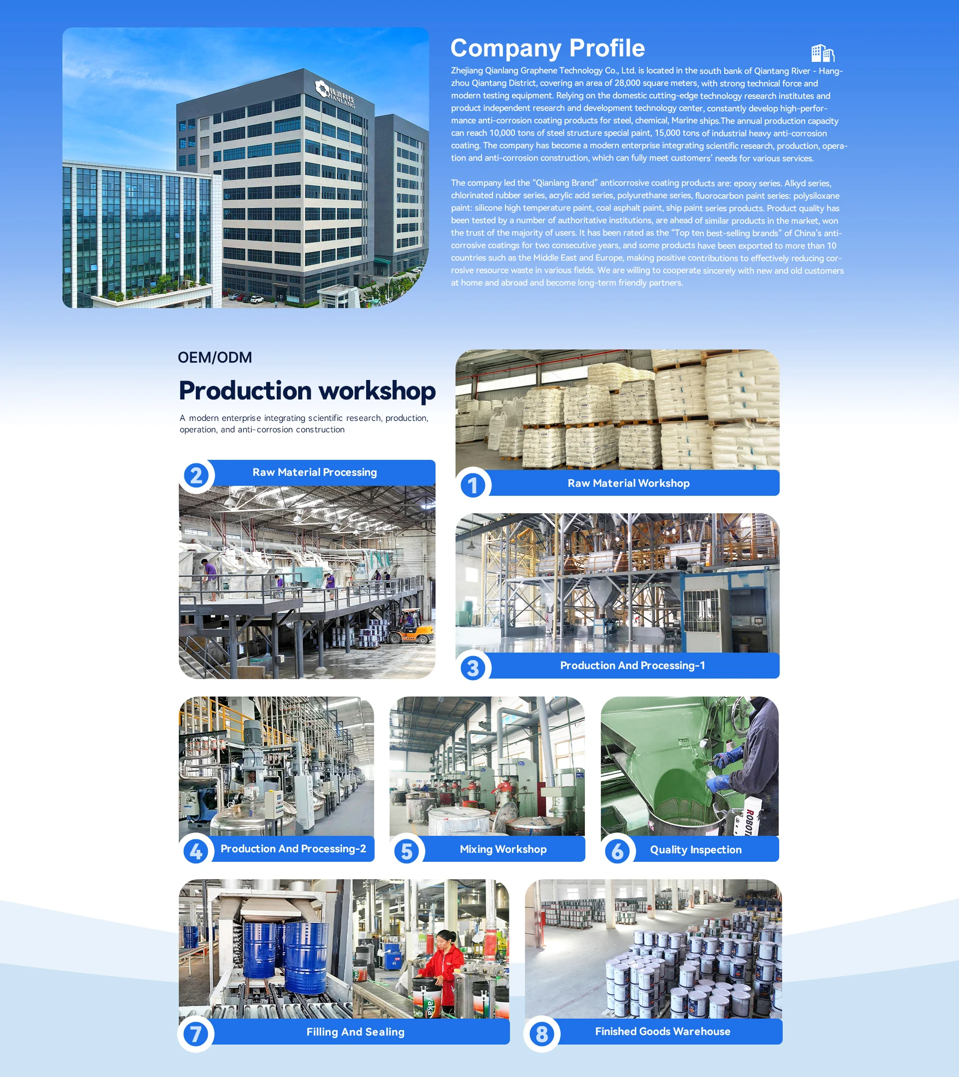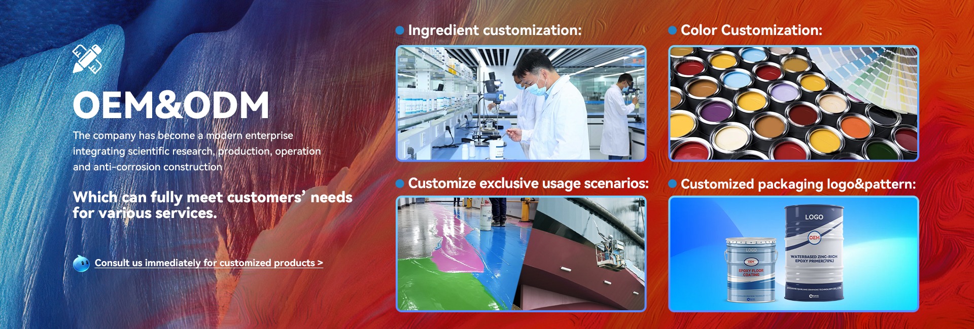 We have cutting-edge technology research institutions and product independent research and development technology centers. We continue to develop high-performance anti-corrosion coating products suitable for steel structures, chemicals and ships. The annual production capacity can reach 10000 tons of steel structure special coatings and 15000 tons of industrial heavy-duty anti-corrosion coatings.